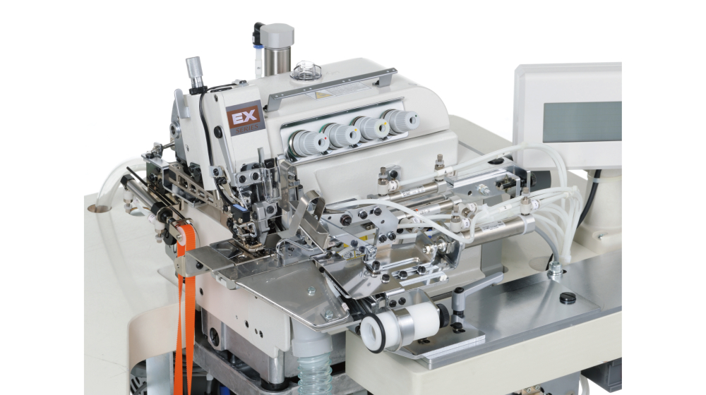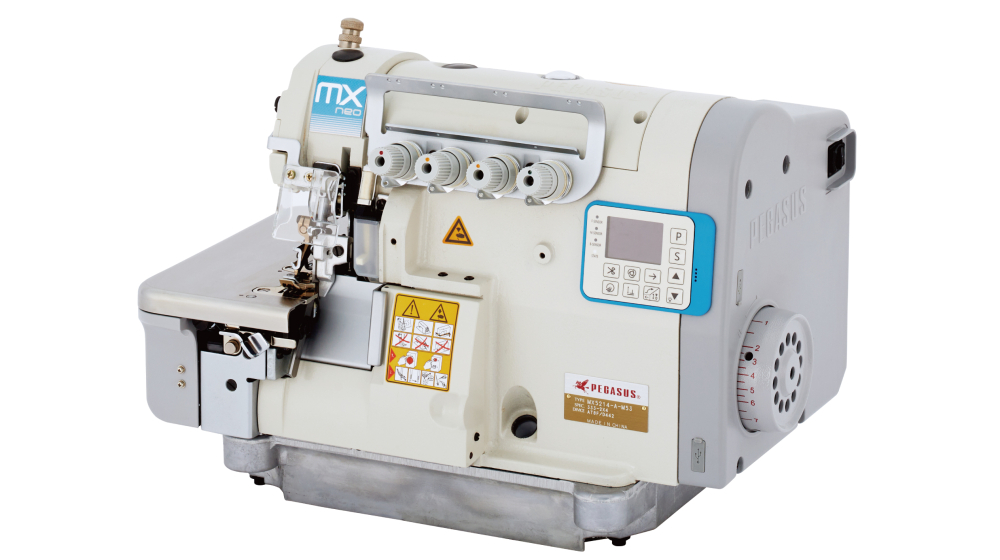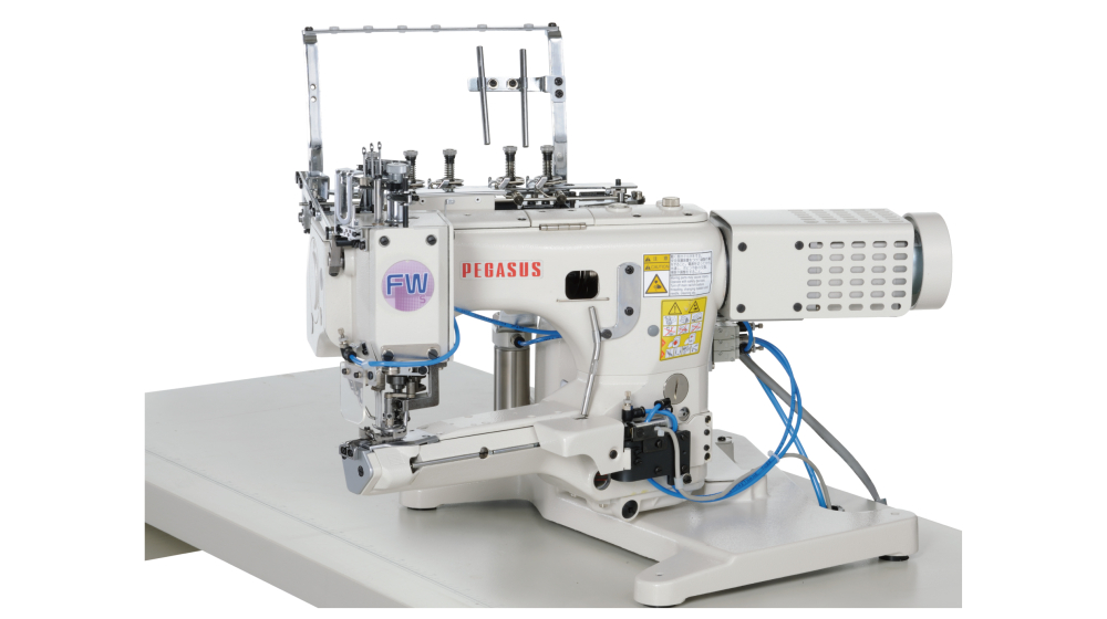 工業用ミシン M縫い専用1本針オーバーロックミシン&シームオープナー、MX-Digi Series (デジタル制御)、カバリング用縦筒型偏平縫いミシン(ツブシ)FW-S、オイルバリアタイプ 3本針シリンダーベッド型偏平縫いミシンWX664P、半自動オープンヘミングユニット(丸物)PHN-201